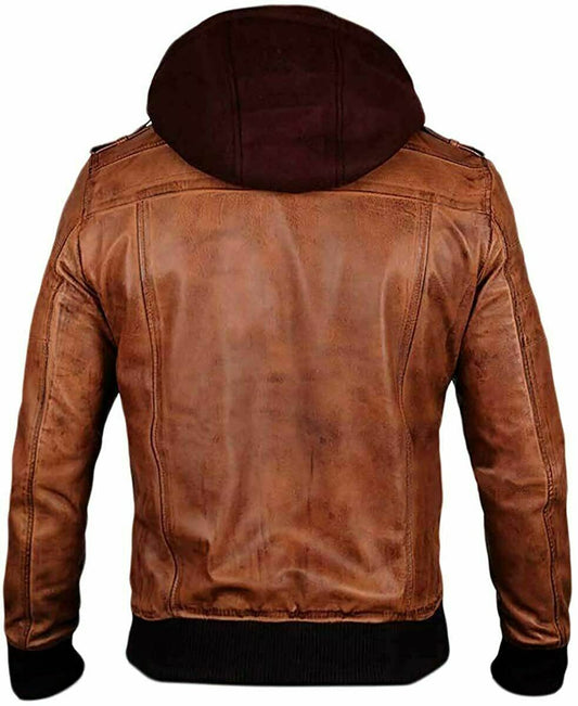 Edinburgh Leather Jacket With Hood Brown