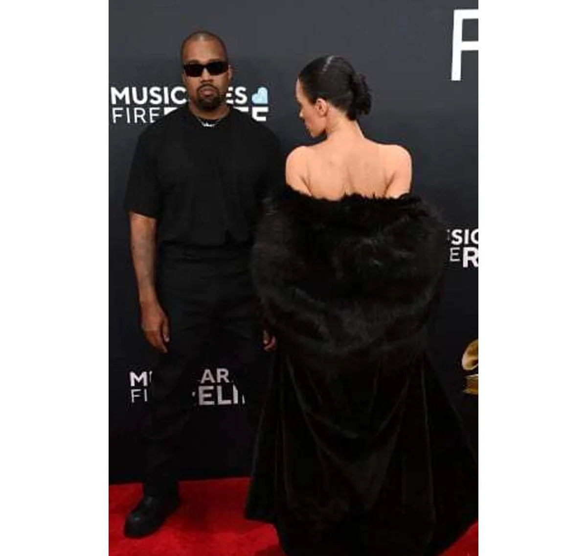 Bianca Censori Grammys Black Fur Coat