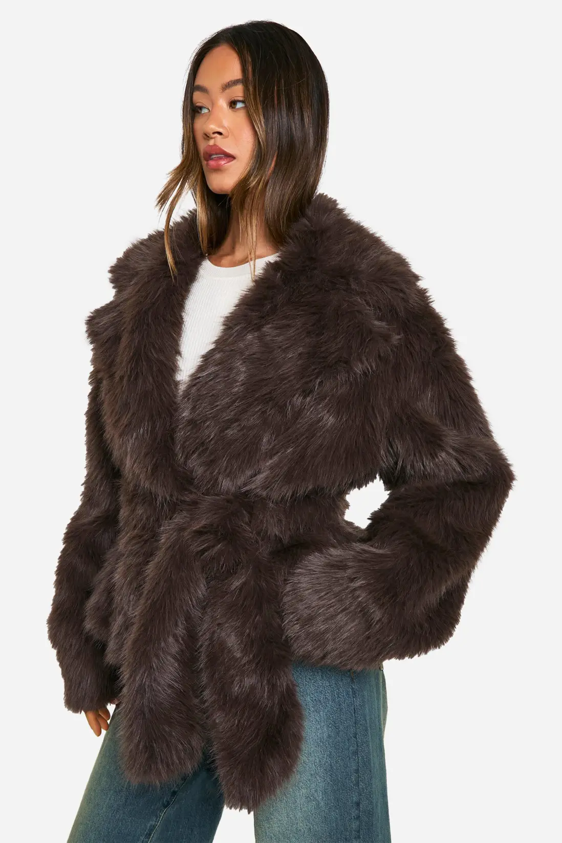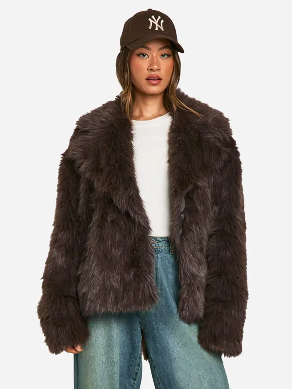 Boohoo Brown Faux Fur Jacket