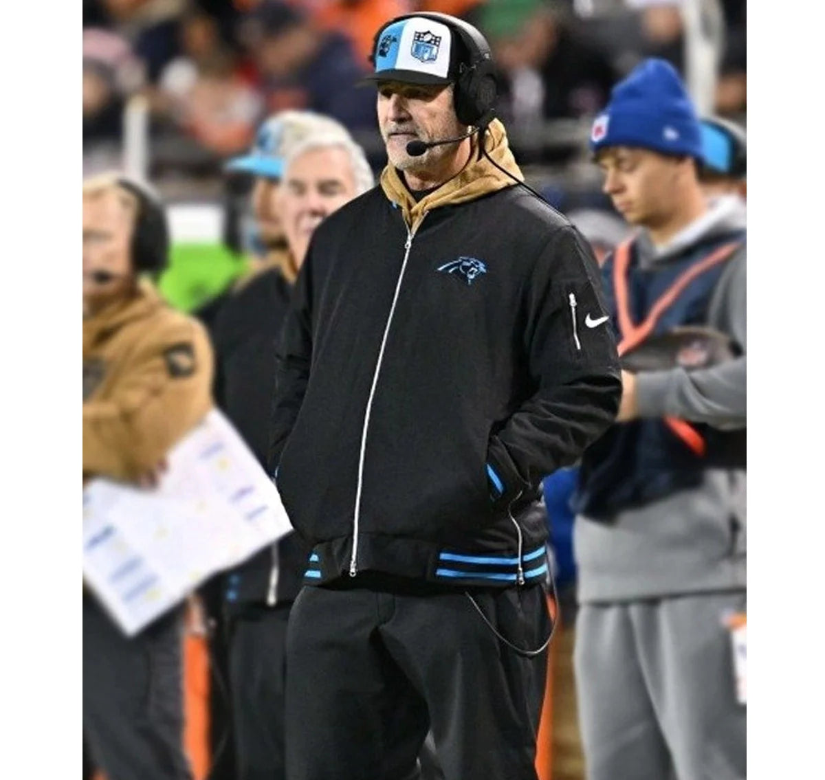 This jacket is a must-have for die-hard Panthers fans and stylish people alike. It is not only a matter of expressing your team spirit; it is a matter of each of your outfits being colorful and lively. The ageless style of the bomber jacket and the vibe of the Panthers will soon turn this into your daily wear outfit.