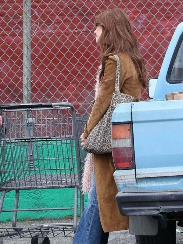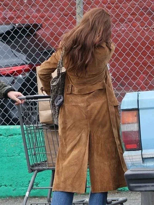 Daisy Edgar Jones Here Comes The Flood Brown Suede Coat
