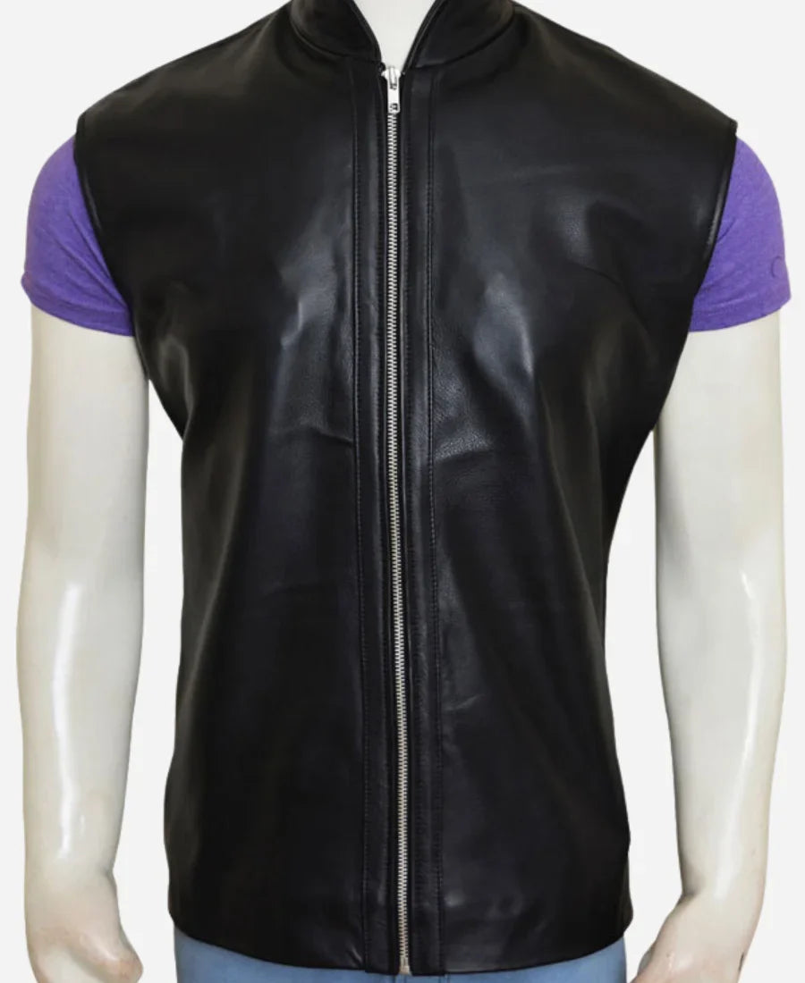 This is an impressionable wetsuit vest. You can choose between high-quality faux leather and real leather. Furthermore, it is very versatile, as it is sleekly painted black. It has a sharp, erect collar and makes it seem a little bit modern. The zipper at the front is another feature that ensures the jacket fits well in the back and remains comfortable, making it both practical and fashionable.
