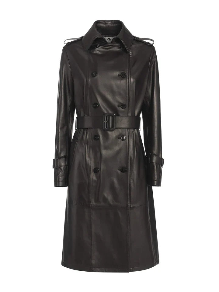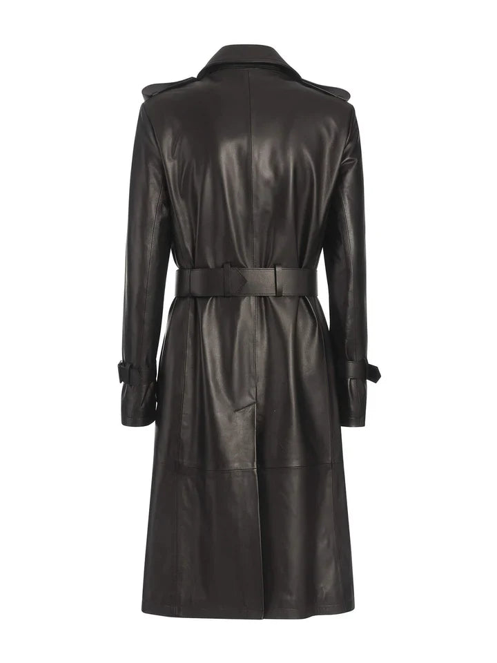 Elevate Your Style with This Stunning Long Trench-Style Leather Jacket