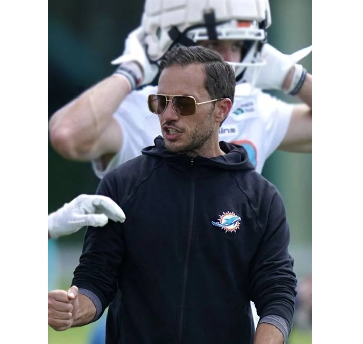 Bring the Mike McDaniel Black Hoodie to the confident and strategic approach of Mike McDaniel. Based on his cool appearance, it is comfortable and sharp. This will be an all-purpose hoodie that is ideal to wear during the game, while hanging out, or just while resting at home, and it will give your wardrobe a new touch.