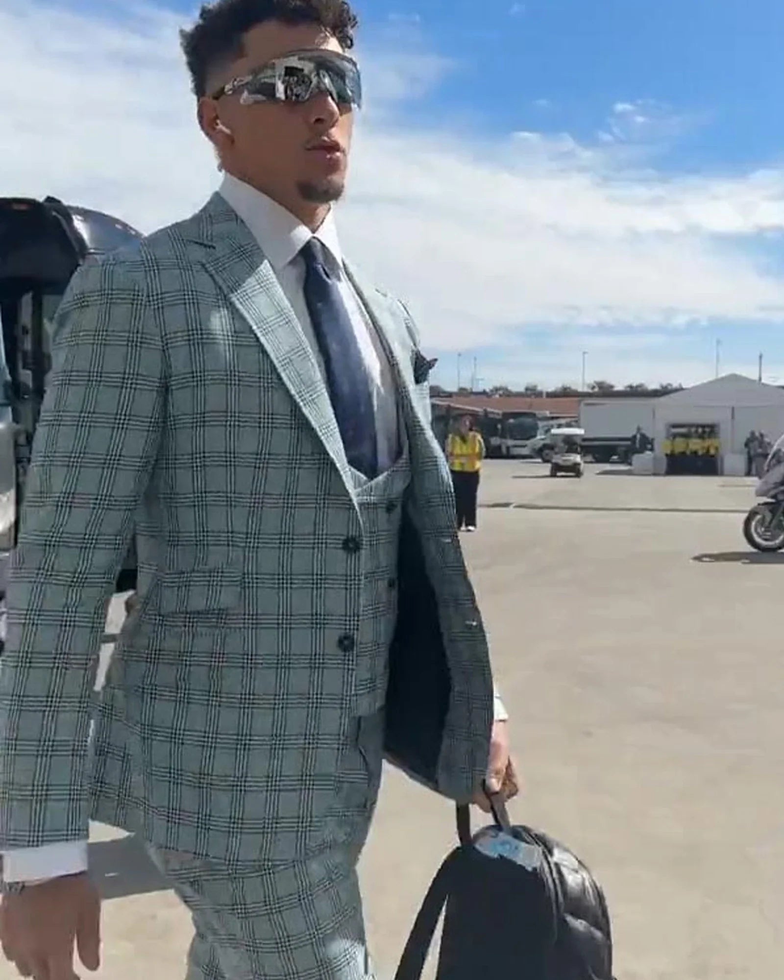 Patrick Mahomes Gray Check Suit.