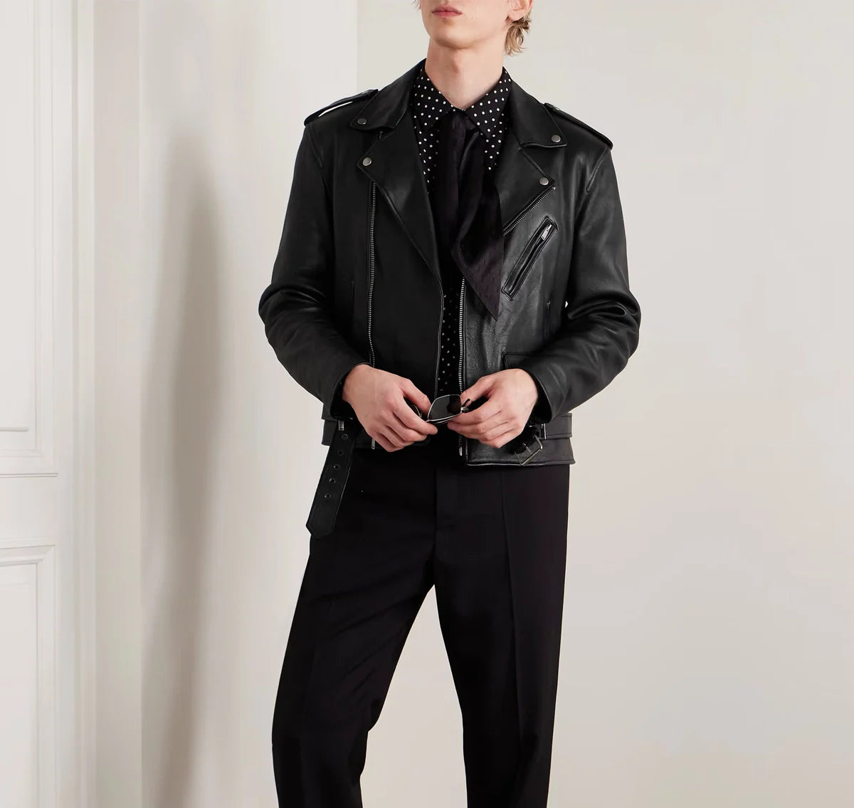 Go out confidently in the Saint Laurent Leather Jacket. The neat black color is inspired by traditional high-fashion designs (not official) and brings the eternal appearance of rebellion and sophistication that makes you feel like a brave and unstoppable person.