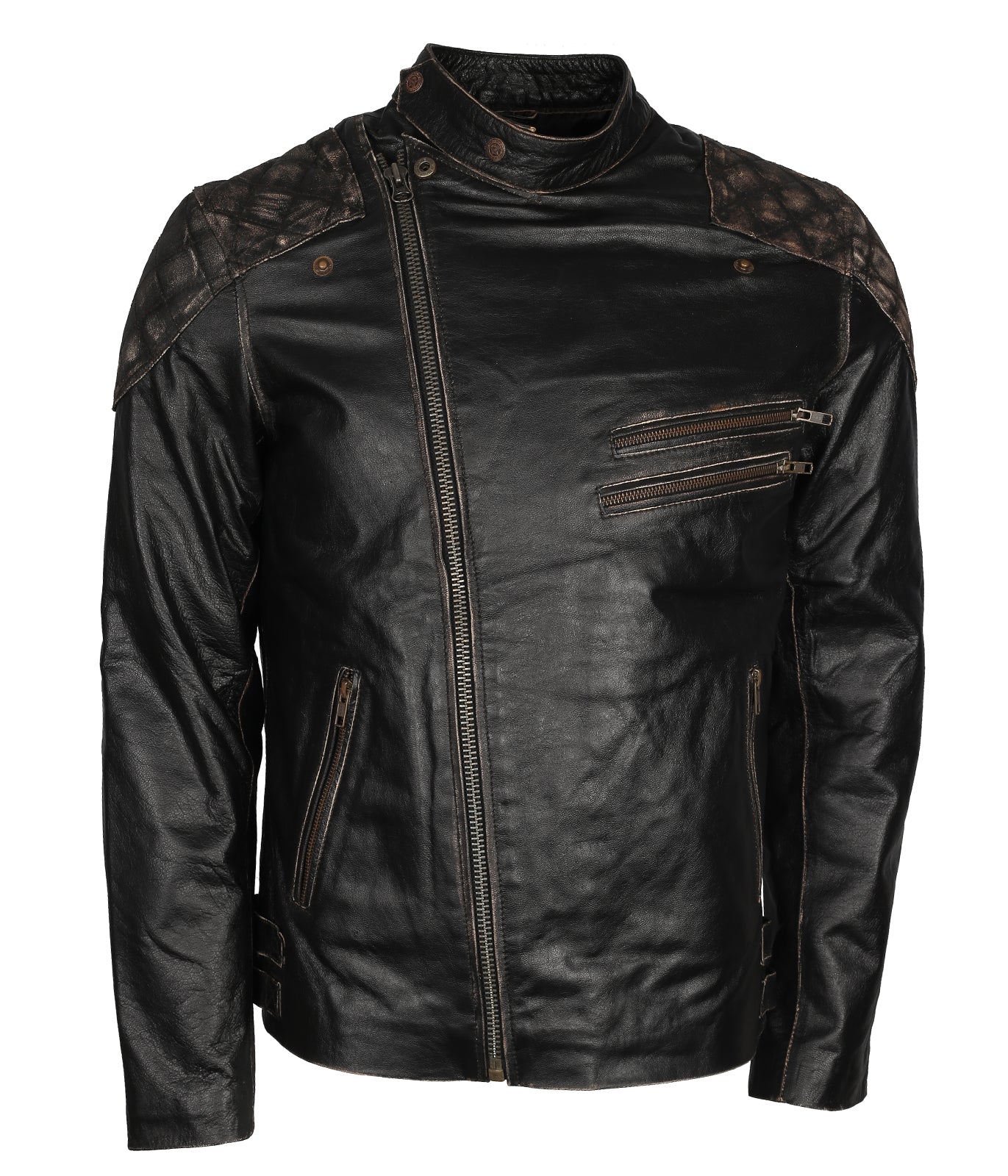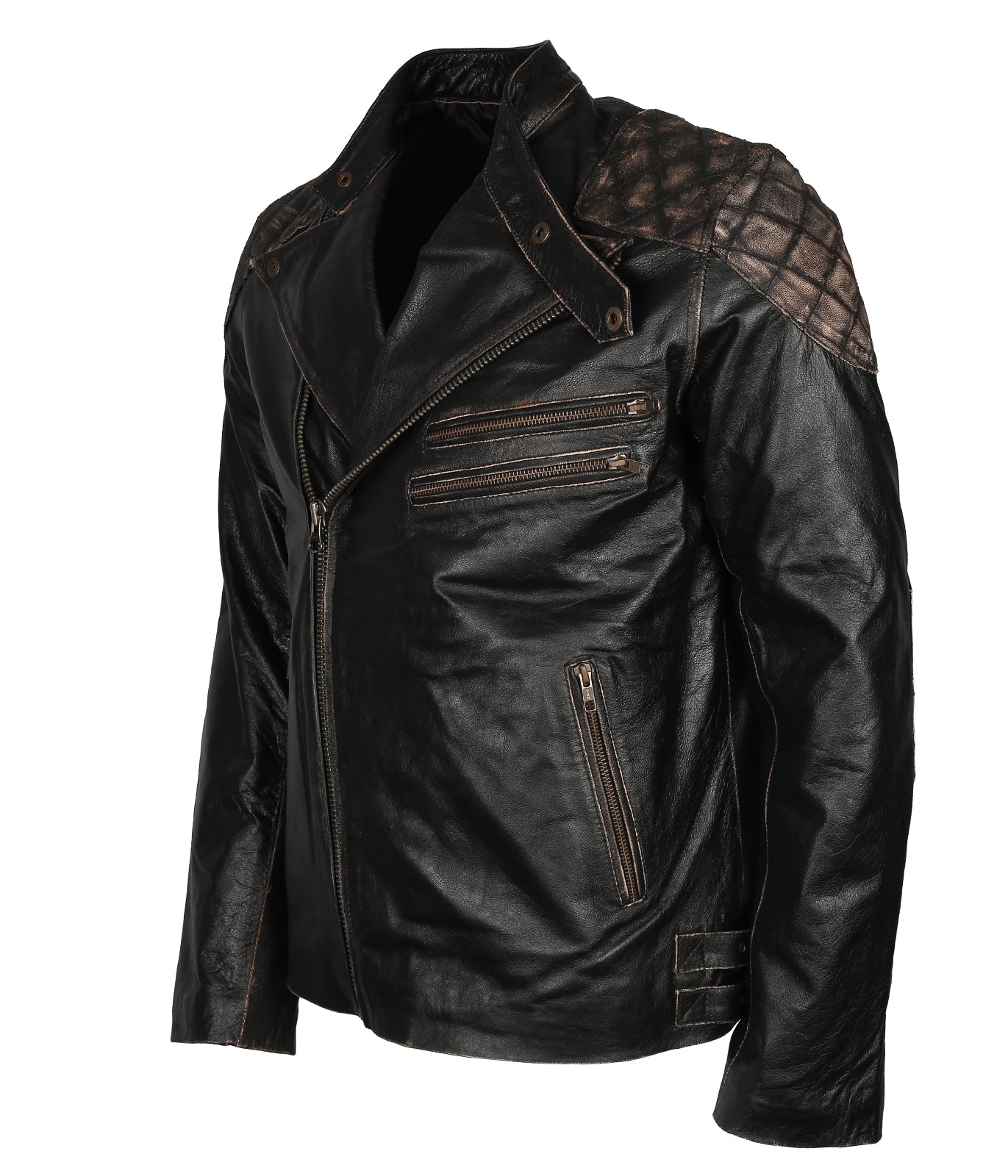 Skull Embossed Black Distressed Leather Jacket