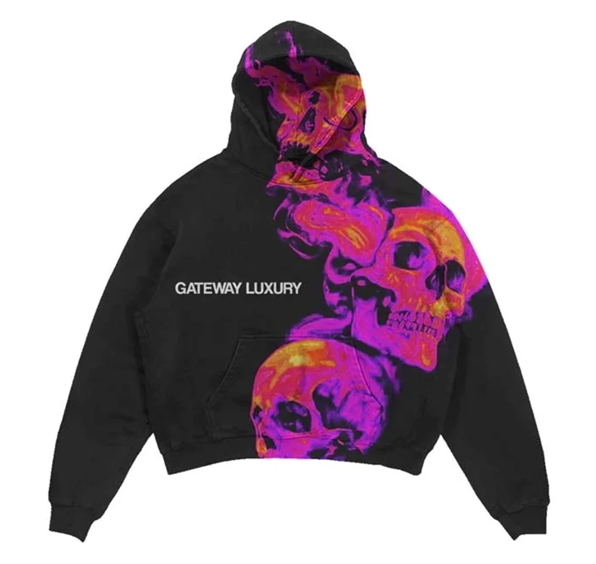 The Skully Pink Smoke Hoodie will help you stand out, combining style and comfort in a range of colors. You need not wait to upgrade your wardrobe. Visit the App and Zing Apparel and to get your favorite color and size before they’re sold out. Your new favorite sweatshirt is just a click away!
