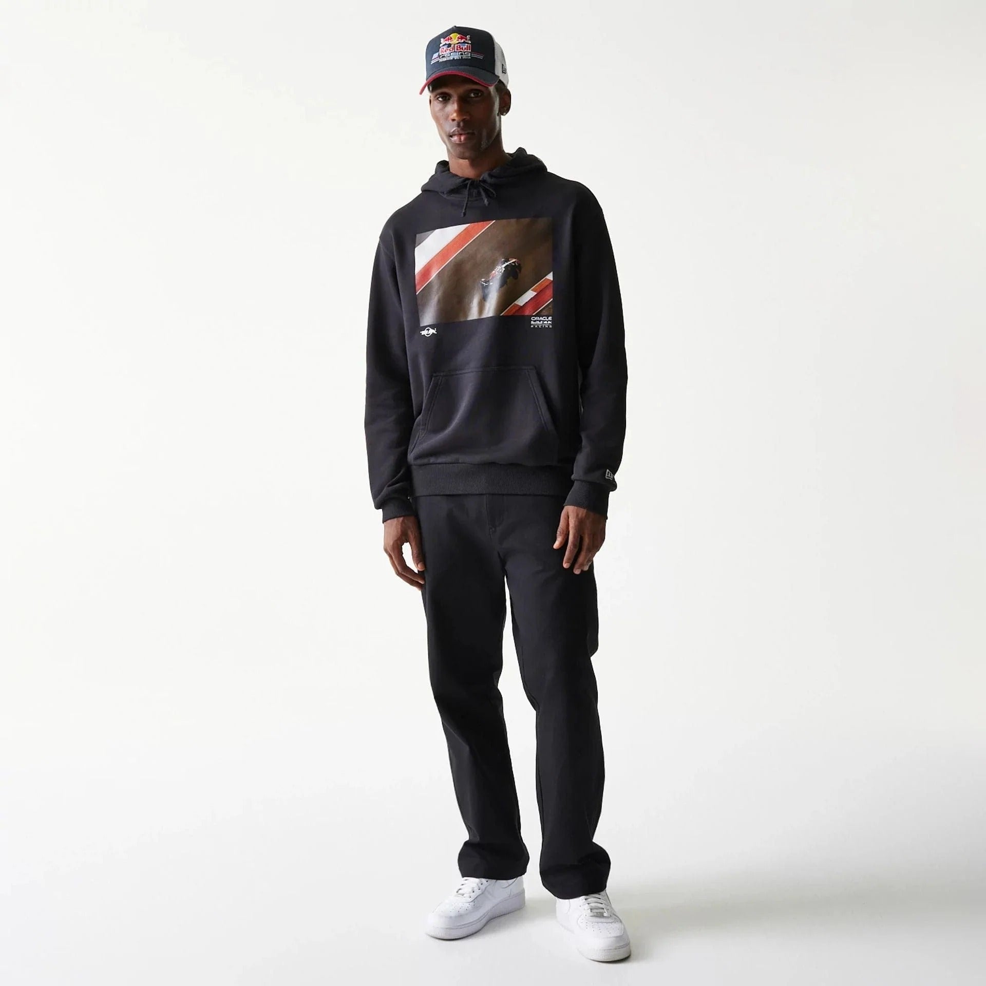 Inspired by RedBull. You are about to turbocharge your wardrobe. You want to be fast and have a unique fashion sense; now you can achieve both. The best garment is the Vintage Red Bull Big Embroidered Logo Racing Hoodie in Black, which is essential for both racing fans and streetwear enthusiasts. Thus, it pumps a lot of adrenaline into your daily appearance and leaves you very comfortable.