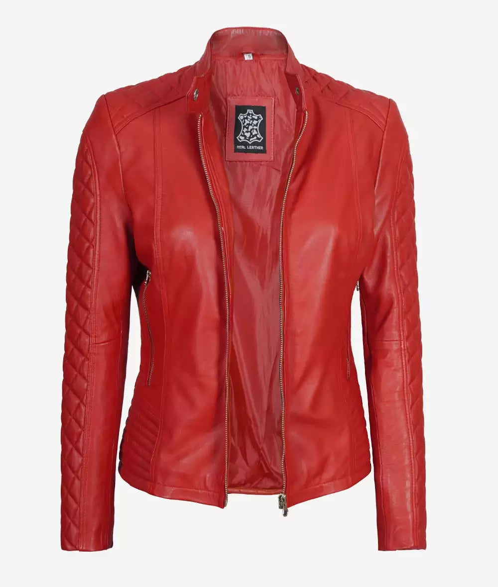 Biker Quilted Leather Jacket Women, Red