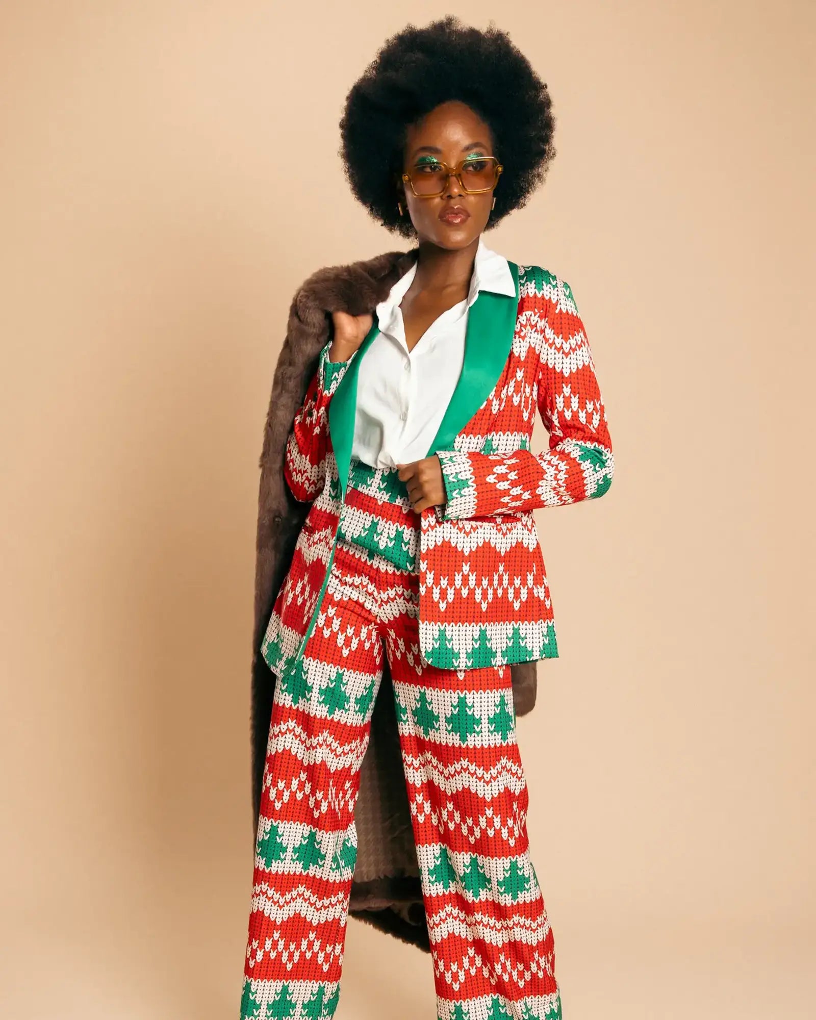 Womens Knit Print Christmas Suit
